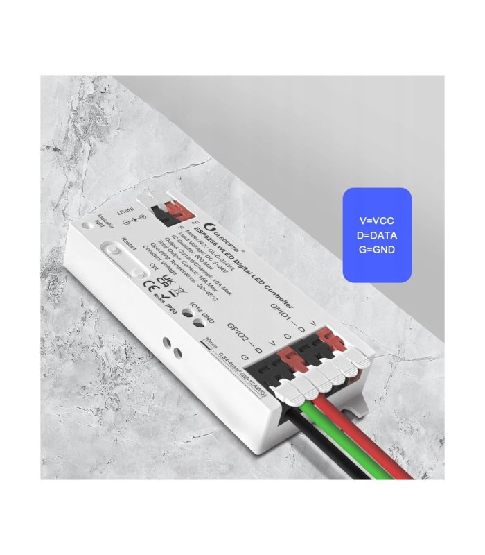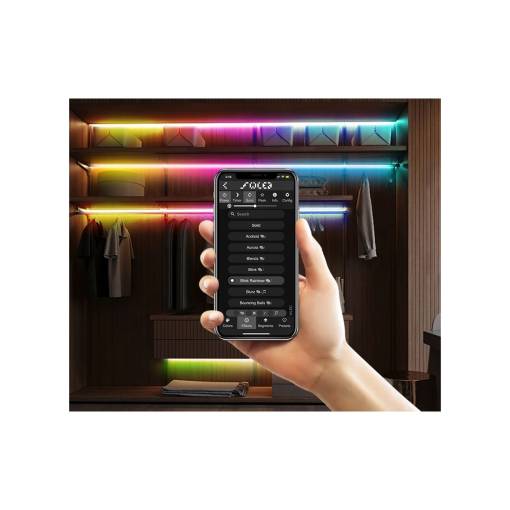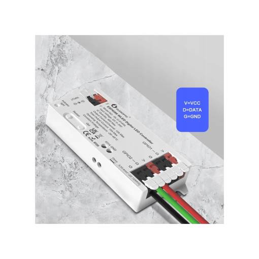Controler permite schimbarea culorilor, a intensității și a efectelor de lumină prin mobil. Este suficient să îl conectați între sursa de alimentare și banda LED și transformă o lumină obișnuită într-o iluminare inteligentă, care poate fi controlată cu ușurință.