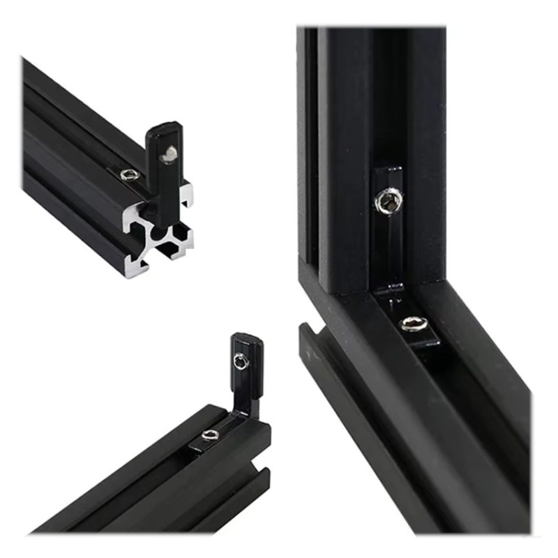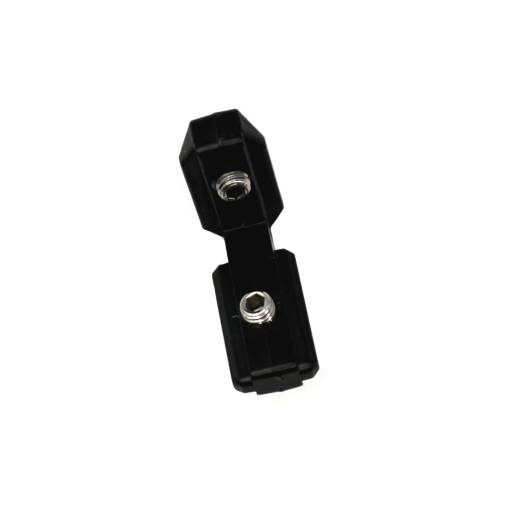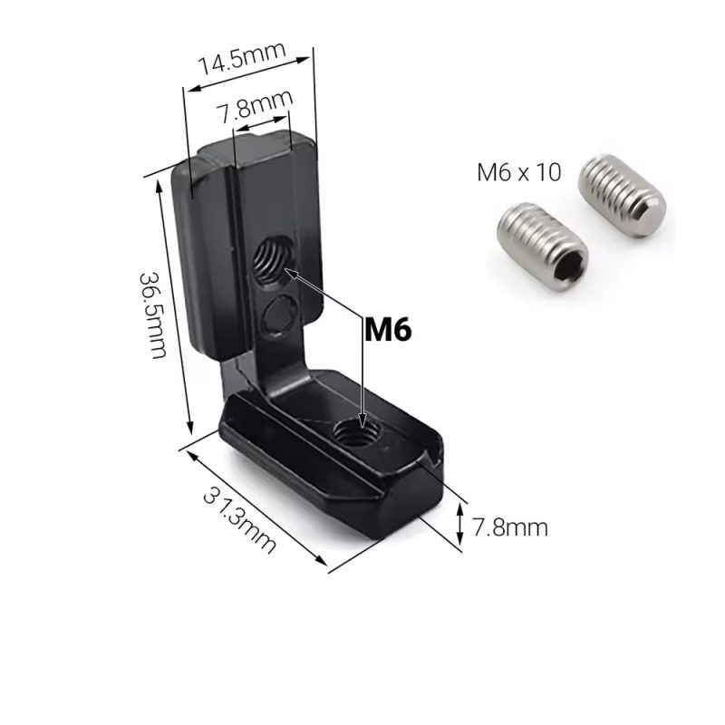 Colțar din oțel pentru montaj în șina profilurilor din aluminiu 30x30. Colțarul permite conectarea la profilul existent din aluminiu cu un alt profil sub un anumit unghi. Parte a colțarului este un șurub încastrat. Întregul colțar, împreună cu șuruburile, se ascunde în spațiul șinei și nu deranjează astfel suprafața exterioară a profilului pentru alte montaje.