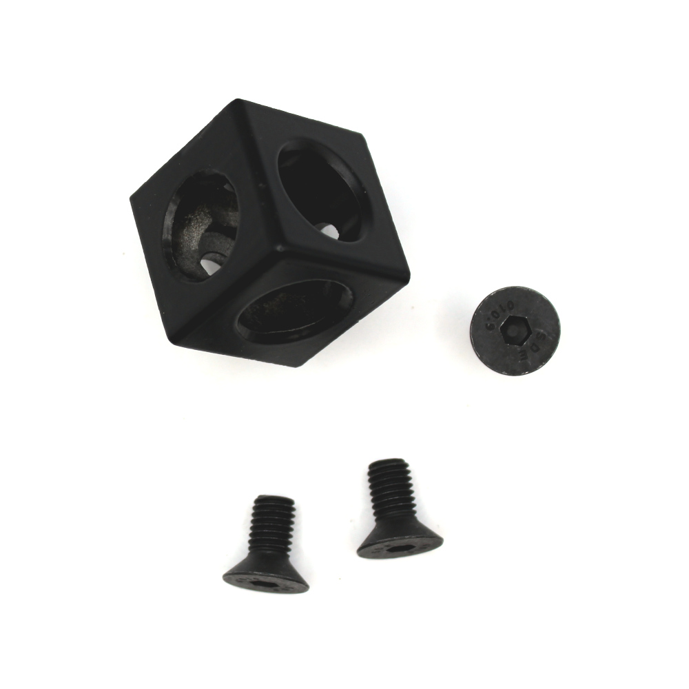 Cubică din oțel, care permite îmbinarea colțară a până la trei profile într-un unghi drept. Se instalează dintr-o parte a profilului, îndoiește tăietura profilului și creează astfel o construcție plăcută din punct de vedere estetic și robustă. Ideală pentru montajul construcțiilor din aluminiu.