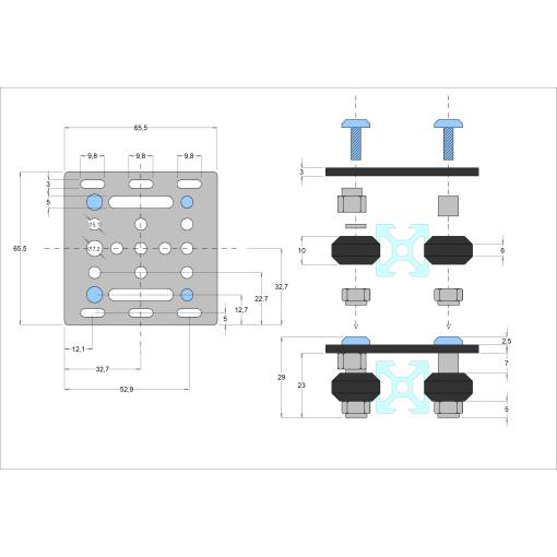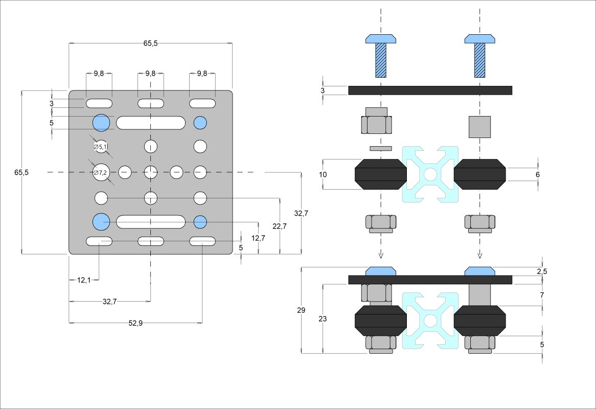Nucă din oțel destinată pentru șinele profilurilor din aluminiu 30x30. Forma nucii permite montarea și demontarea ușoară direct din partea profilului, fără a fi necesară introducerea sau utilizarea unei chei speciale. Striația de pe nucă fixează în siguranță poziția nucii strânse la locul ales.