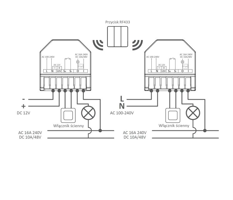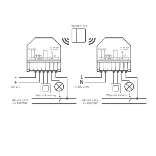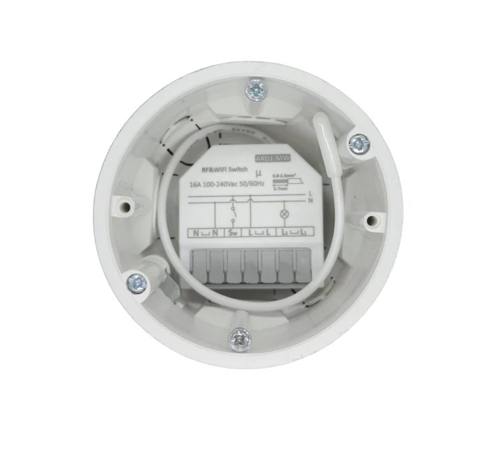 Releul RF433MHz încastrat permite înlocuirea unui întrerupător sau a unei prize obișnuite cu un dispozitiv inteligent controlat de un buton sau întrerupător RF433 fără fir.
