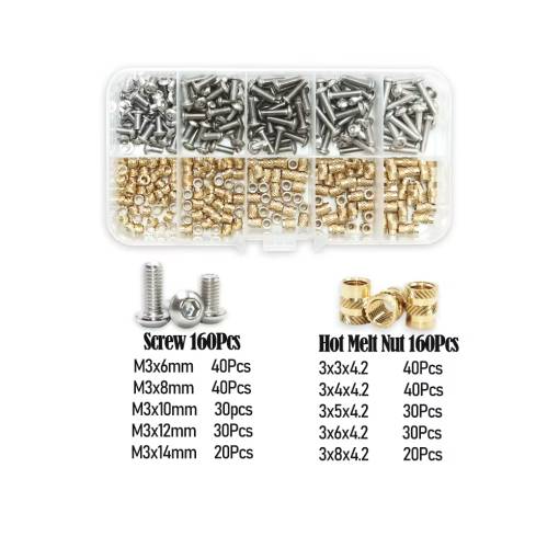 Set de inserturi încastrate cu șuruburi M3 și șuruburi cu cap hexagonal pentru utilizări versatile în cele mai diverse proiecte și imprimare 3D.
