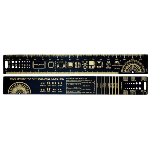 Conține măsurarea lungimii în cm și inci până la lungimea de 25 cm.
