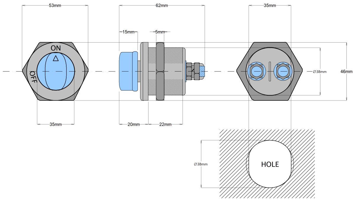 Ideal pentru deconectarea bateriilor de 12V și 24V de la consumatori și întreruperea circuitelor de putere.