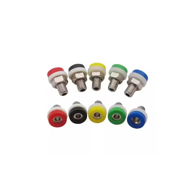 Priză banana pentru conectori banana cu diametrul de 2mm. Design robust din metal cu un finisaj rezistent la coroziune și piuliță. Destinată pentru montaj în panou.