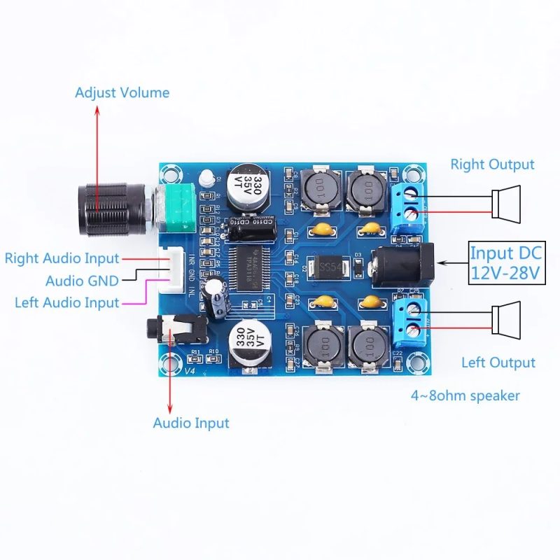 Modul amplificator stereo audio cu TPA3118, clasă de lucru D.