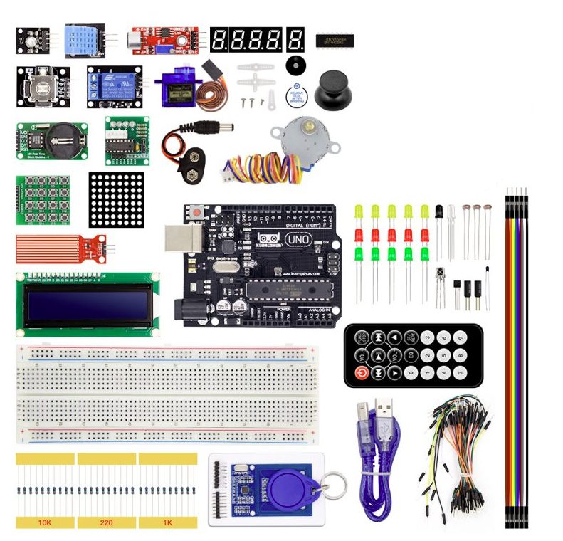 - Diferite module electronice și componente potrivite pentru scopuri educaționale Arduino