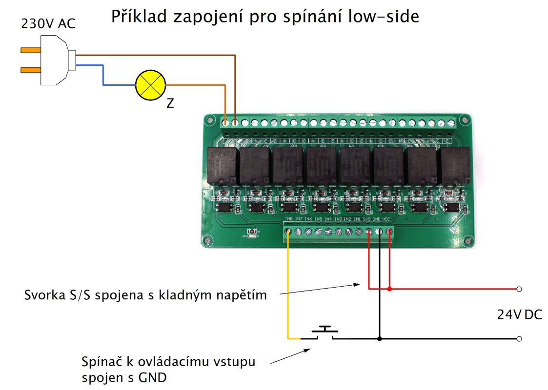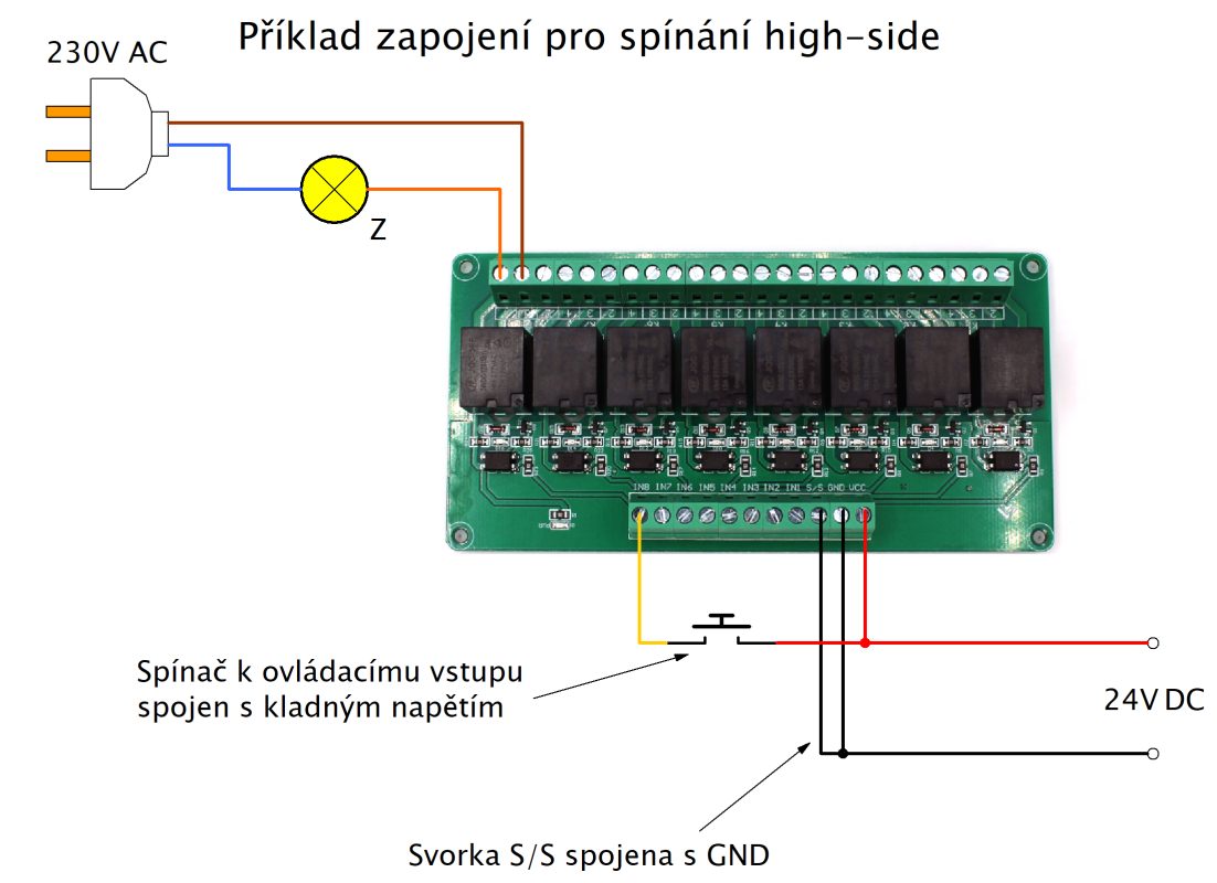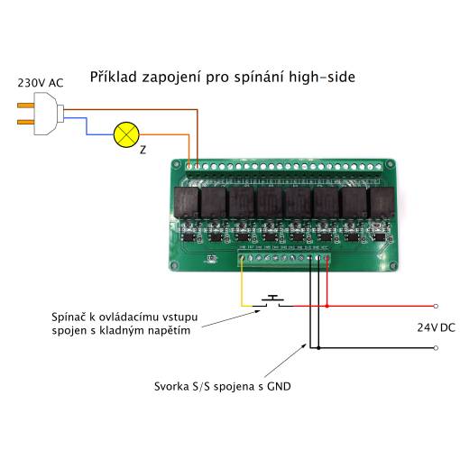 Modul releu cu conector pentru șina DIN. Specificații: 8 canale Tensiune: 24V Relu: 49VAC 10A Ambalajul conține un modul releu.
