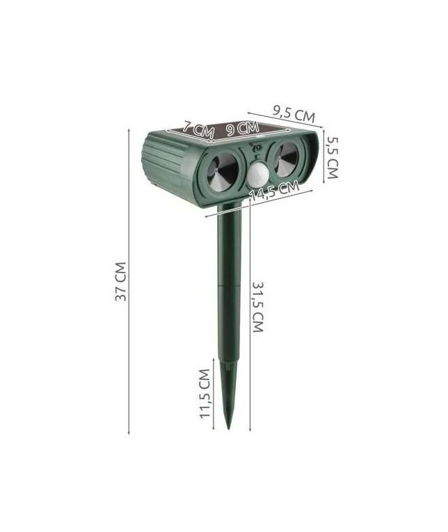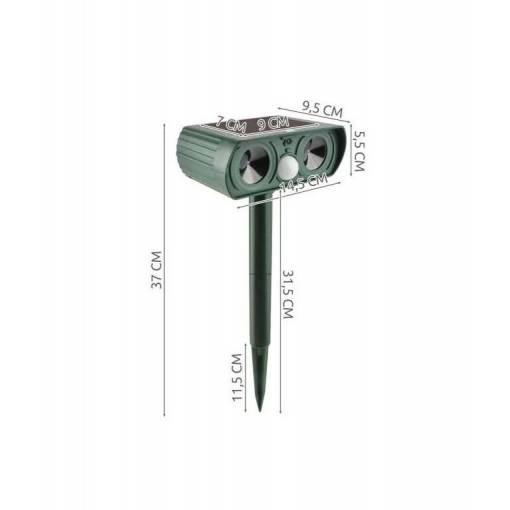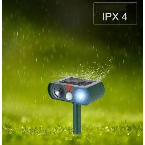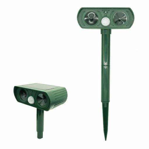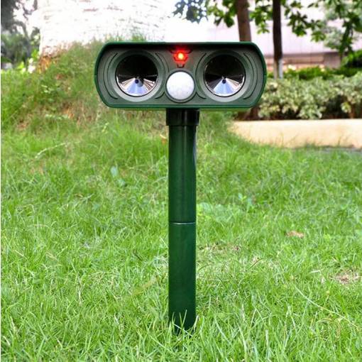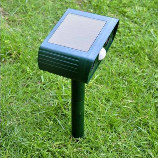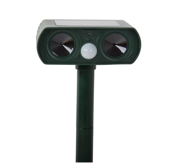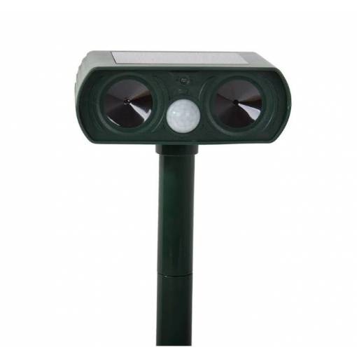 Repelent pentru animale cu panou solar integrat și senzor de mișcare infraroșu (PIR).