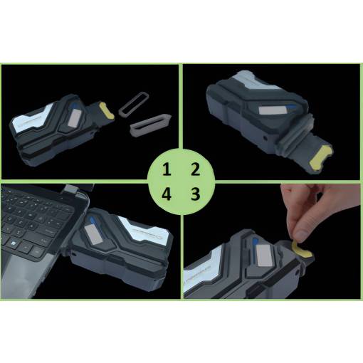 Se montează direct pe coloana sau grila de ventilație utilizând pad-uri din silicon. Expulzează căldura generată de laptop, răcindu-l și reducând temperatura de funcționare a componentelor, asigurând astfel o funcționare stabilă și o durată de viață mai lungă a bateriei.
