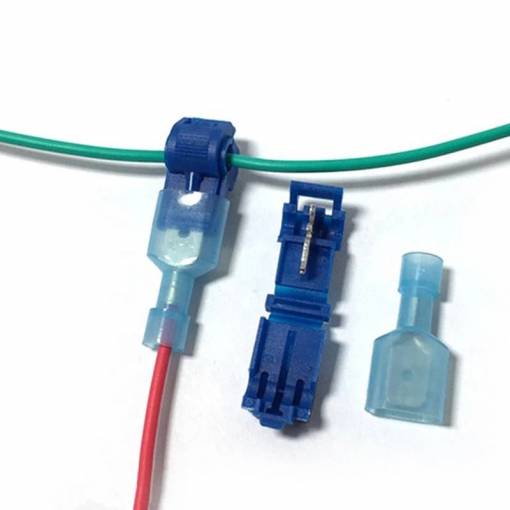 Atunci când aplicați conectorul, va apărea o deteriorare a stratului izolator prin tăierea mufe interne în conductorul original și astfel se va realiza conexiunea electrică dintre ele.